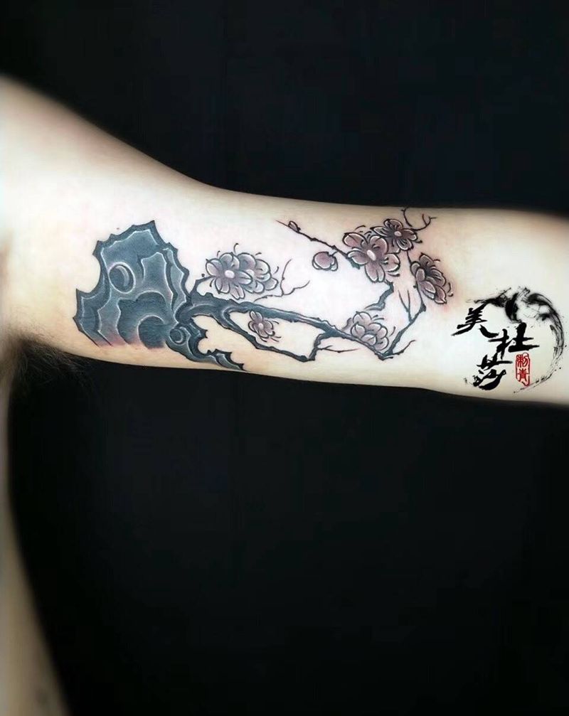 当前位置: 首页 >甘肃省兰州市纹身店-兰州美杜莎刺青纹身图案>梅花。纹身图片_成品手臂国画植物原创纹身图案