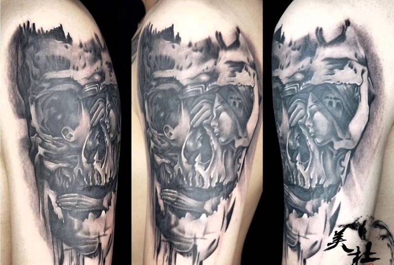 当前位置: 首页 >甘肃省兰州市纹身店-兰州美杜莎刺青纹身图案>骷髅。纹身图片_成品手臂欧美人物纹身图案