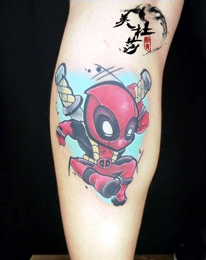 小死侍。纹身图片_成品腿部欧美人物纹身图案