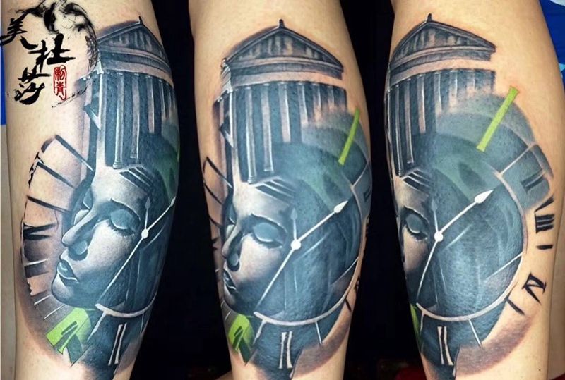 当前位置: 首页 >甘肃省兰州市纹身店-兰州美杜莎刺青纹身图案>时钟。纹身图片_成品腿部欧美人物字符原创纹身图案