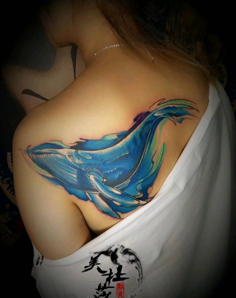 当前位置: 首页 >甘肃省兰州市纹身店-兰州美杜莎刺青纹身图案>水墨鲸鱼纹身图片_背部欧美动物成品纹身图案