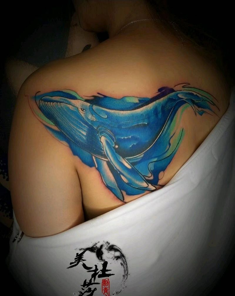 当前位置: 首页 >甘肃省兰州市纹身店-兰州美杜莎刺青纹身图案>水墨鲸鱼纹身图片_背部欧美动物成品纹身图案