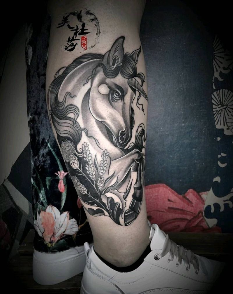 当前位置: 首页 >甘肃省兰州市纹身店-兰州美杜莎刺青纹身图案>独角兽纹身图片_腿部欧美动物成品纹身图案
