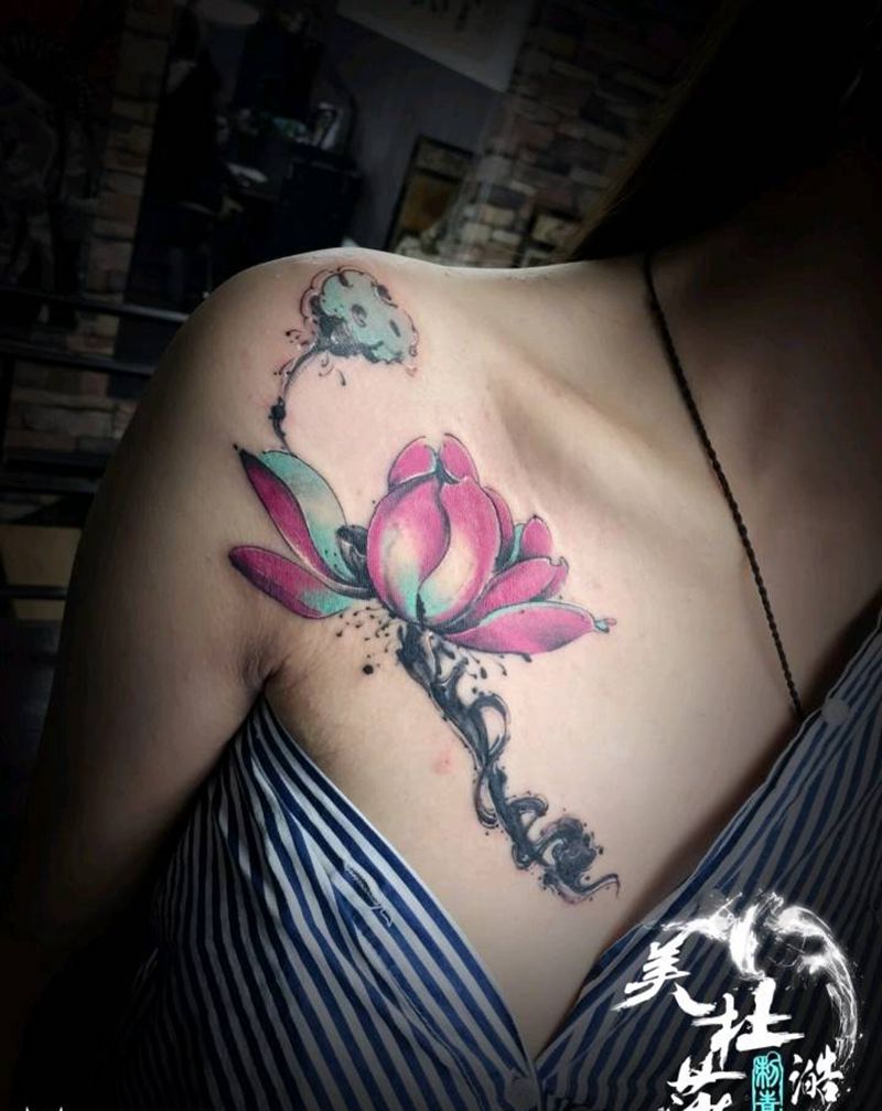 当前位置: 首页 >甘肃省兰州市纹身店-兰州美杜莎刺青纹身图案>莲花遮盖纹身图片