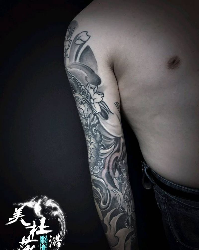 当前位置: 首页 >甘肃省兰州市纹身店-兰州美杜莎刺青纹身图案>花臂象神纹身图片