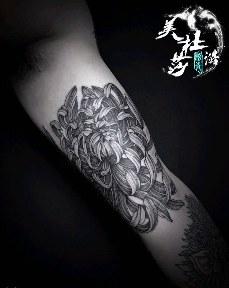 当前位置: 首页 >甘肃省兰州市纹身店-兰州美杜莎刺青纹身图案>菊花纹身图片