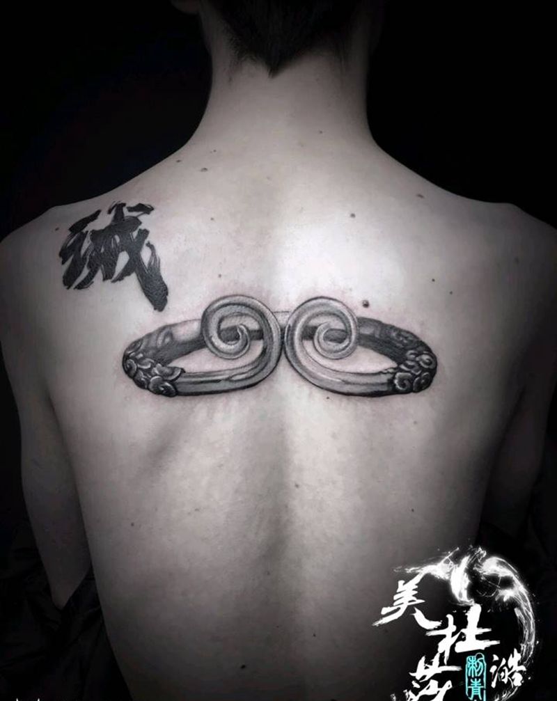 黑灰满背纹身图案
