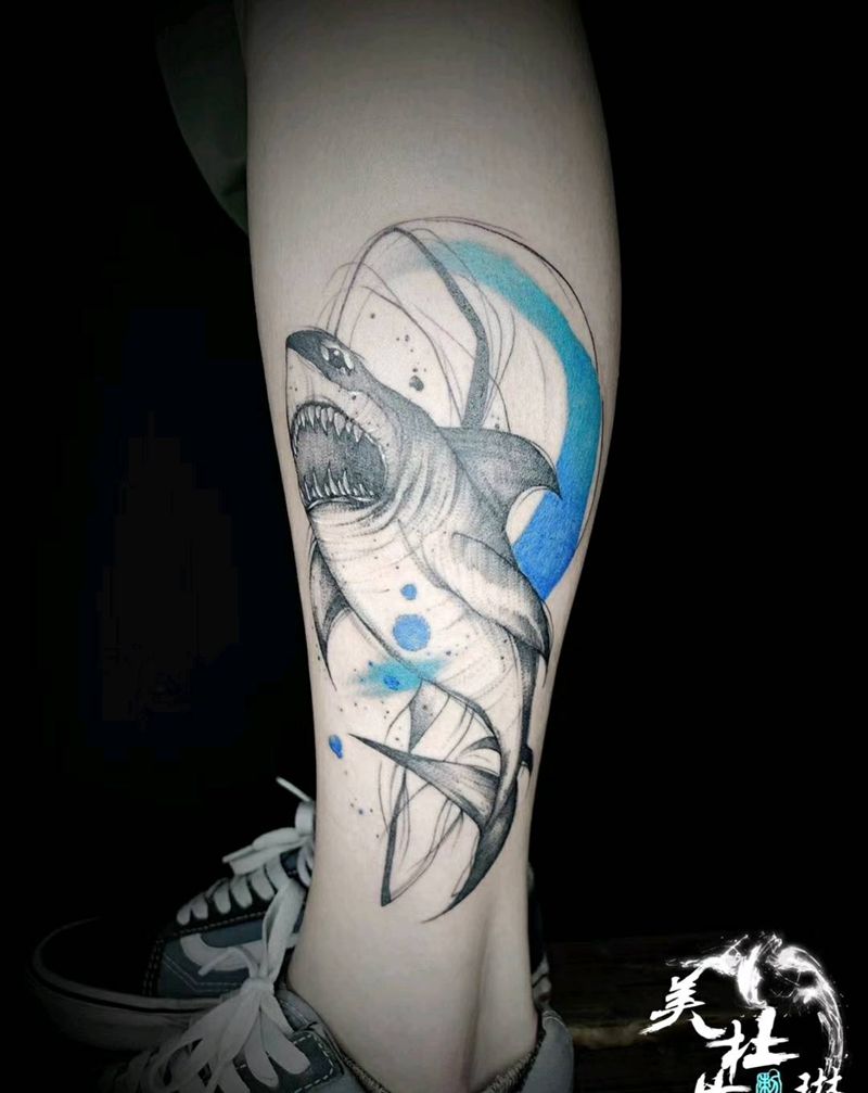 当前位置: 首页 >甘肃省兰州市纹身店-兰州美杜莎刺青纹身图案>鲨鱼纹身图片_腿部几何水彩纹身图案