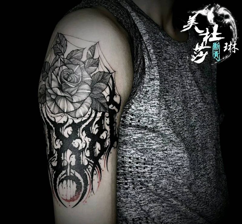 • 纹身吧推荐的披肩图腾半胛纹身图案作品展示