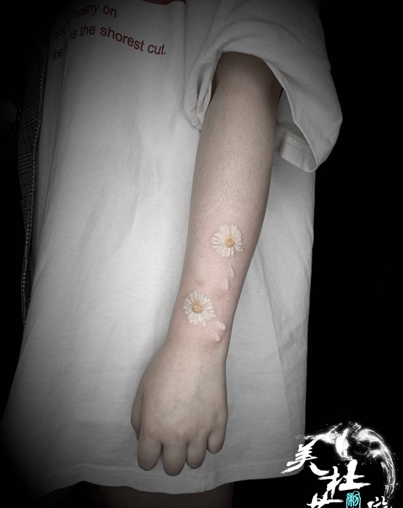 当前位置: 首页 >甘肃省兰州市纹身店-兰州美杜莎刺青纹身图案>雏菊纹身图片_手臂小清新纹身图案