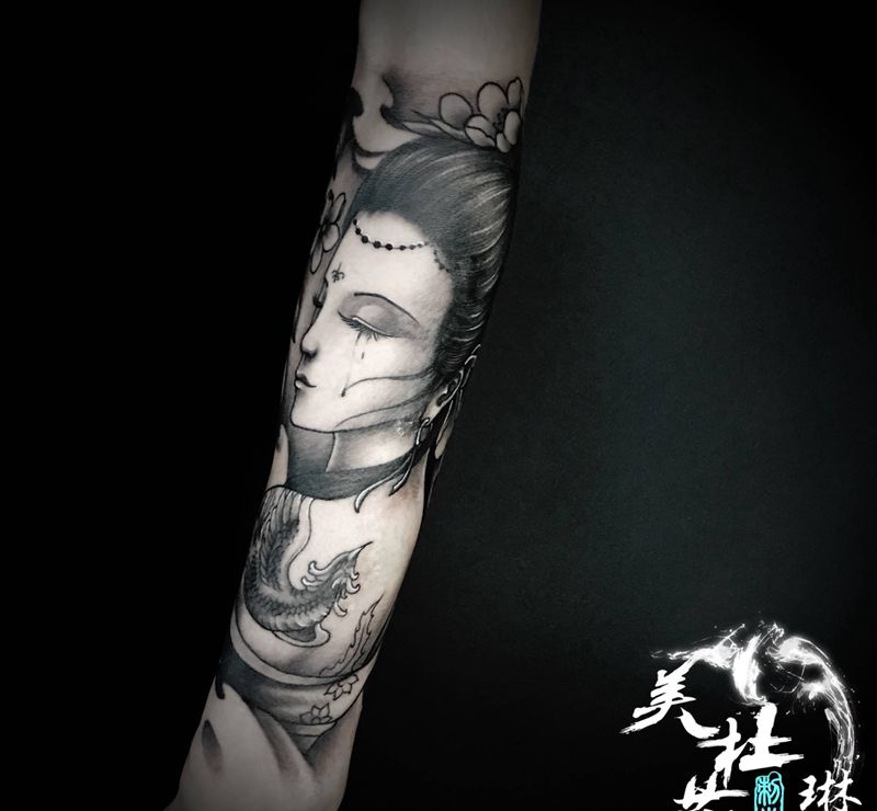当前位置: 首页 >甘肃省兰州市纹身店-兰州美杜莎刺青纹身图案>仕女纹身图片_手臂新传统纹身图案
