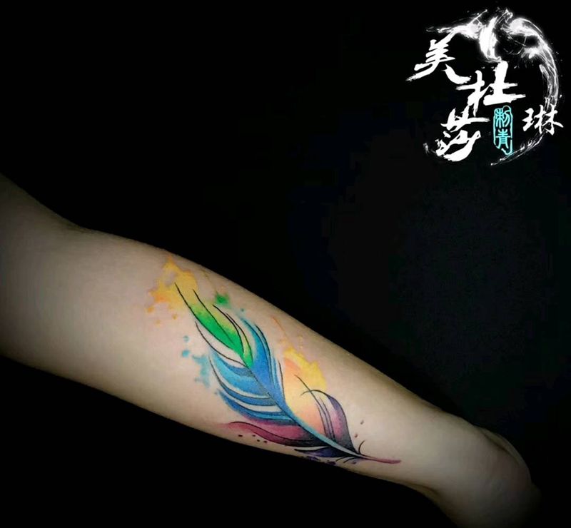 当前位置: 首页 >甘肃省兰州市纹身店-兰州美杜莎刺青纹身图案>羽毛纹身图片_手臂水彩纹身图案