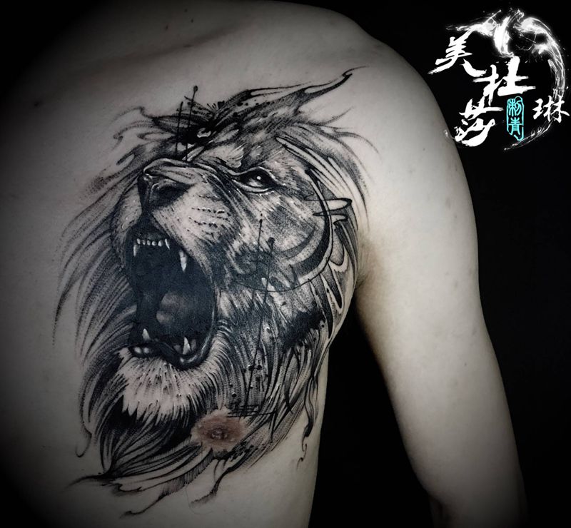 当前位置: 首页 >甘肃省兰州市纹身店-兰州美杜莎刺青纹身图案>狮子遮盖纹身图片_胸部针痕纹身图案