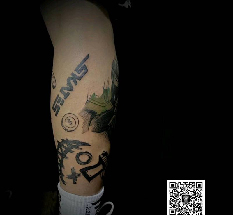 青春纹身图片_腿部New School纹身图案