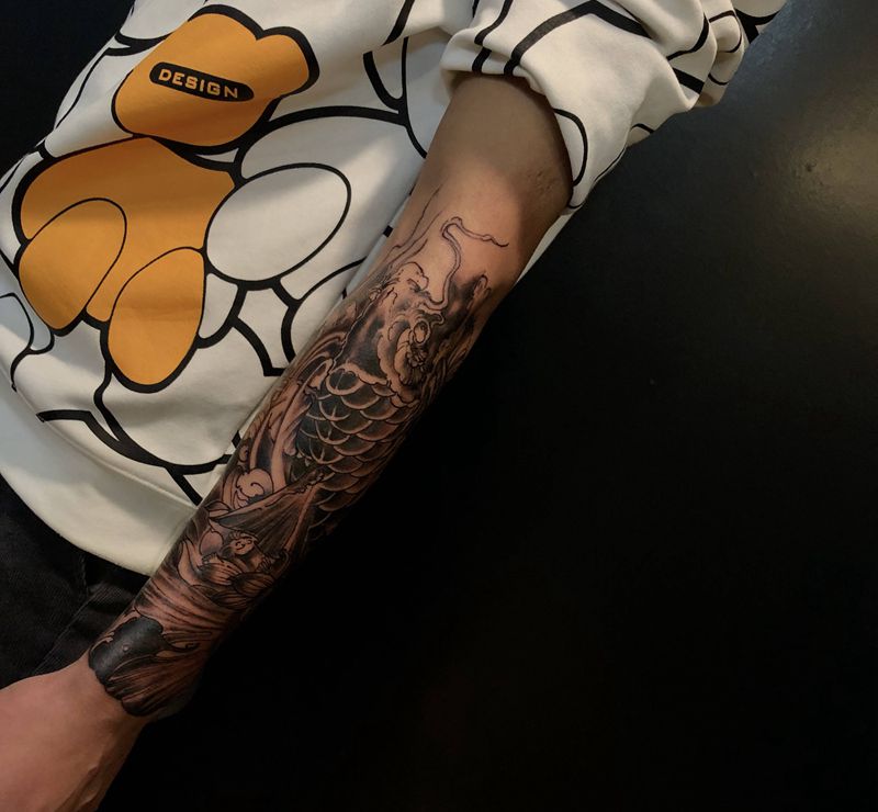 当前位置: 首页 >甘肃省白银市纹身店-明刺先生 艺术刺青纹身图案>鲤鱼纹身图片_手臂新传统纹身图案