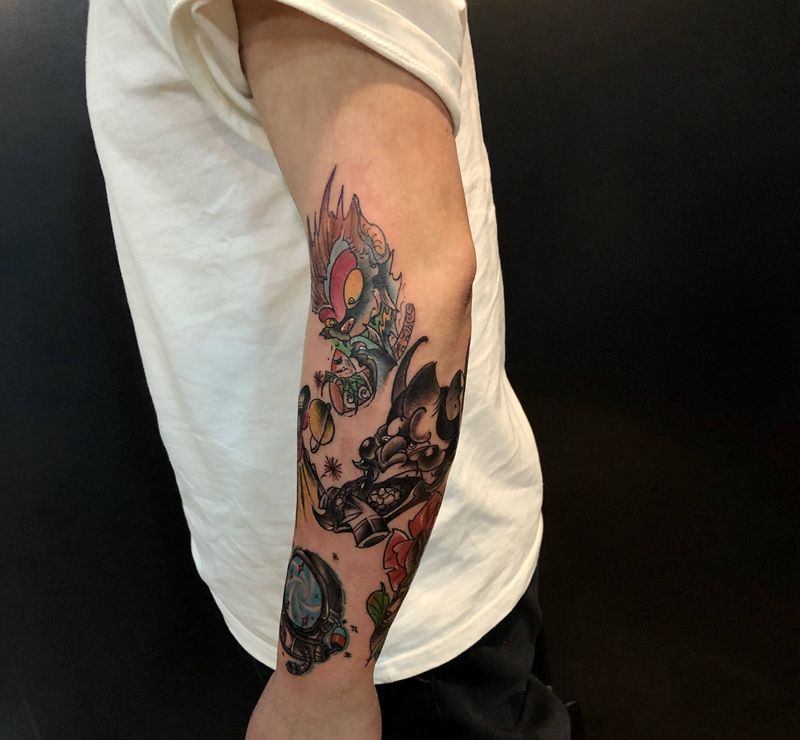 当前位置: 首页 >甘肃省白银市纹身店-明刺先生 艺术刺青纹身图案>拼接纹身图片_Old SchoolNew School纹身图案