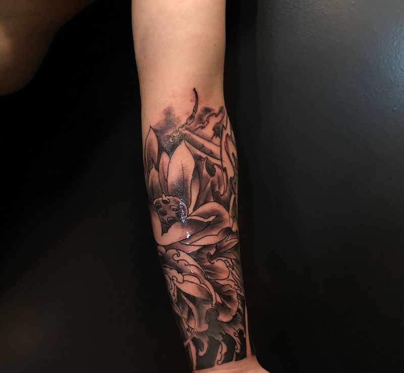 当前位置: 首页 >甘肃省白银市纹身店-明刺先生 艺术刺青纹身图案>荷花纹身图片_新传统纹身图案