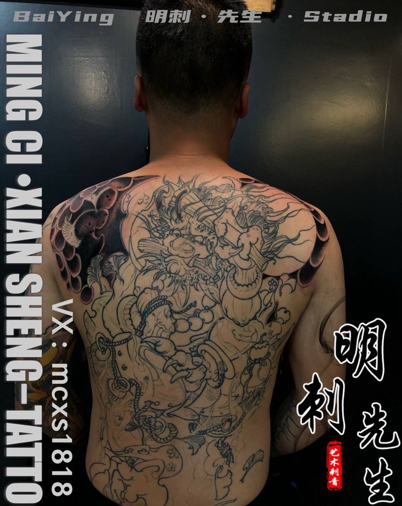 黑灰满背纹身图案