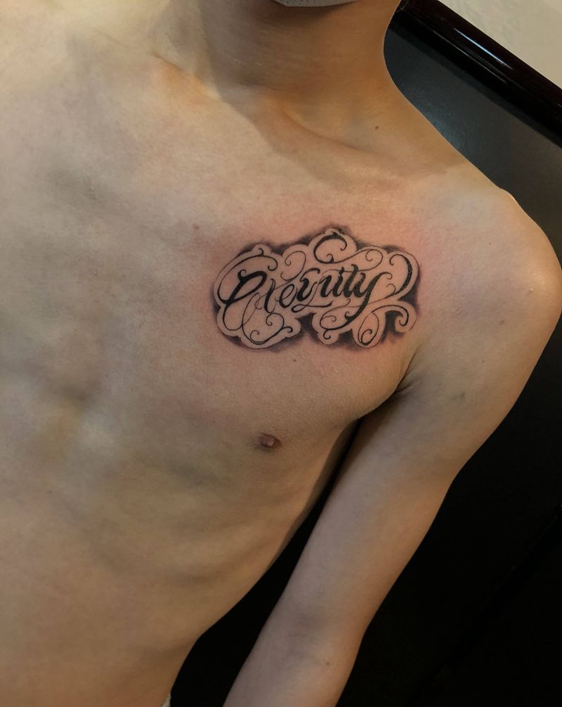 店内花体字纹身图片_胸部纹身图案