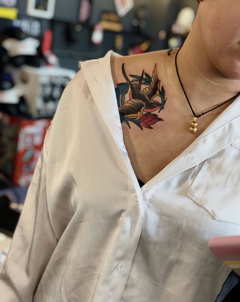 • 女性大花胸纹身_43张霸气漂亮的女性大花胸纹身图案作品