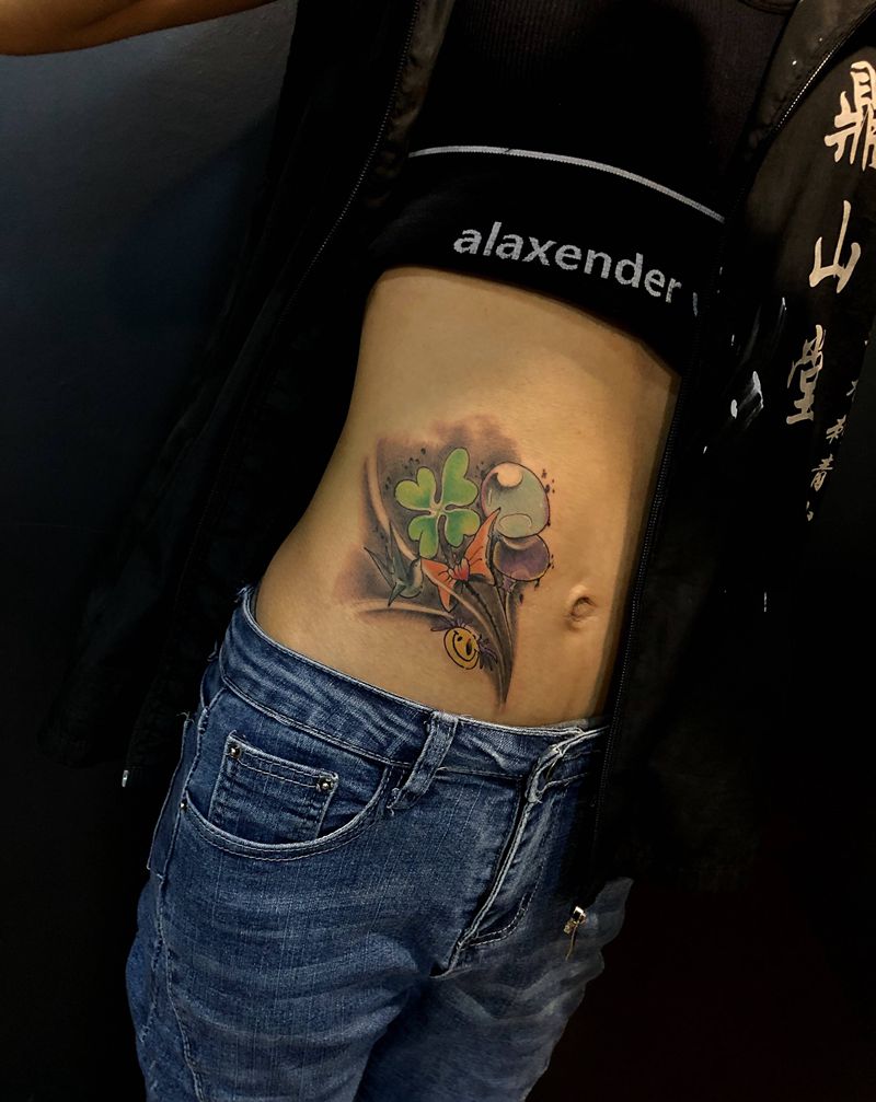 • T关于私处得爱!纹身图片_成品腹部清新字符图腾纹身图案