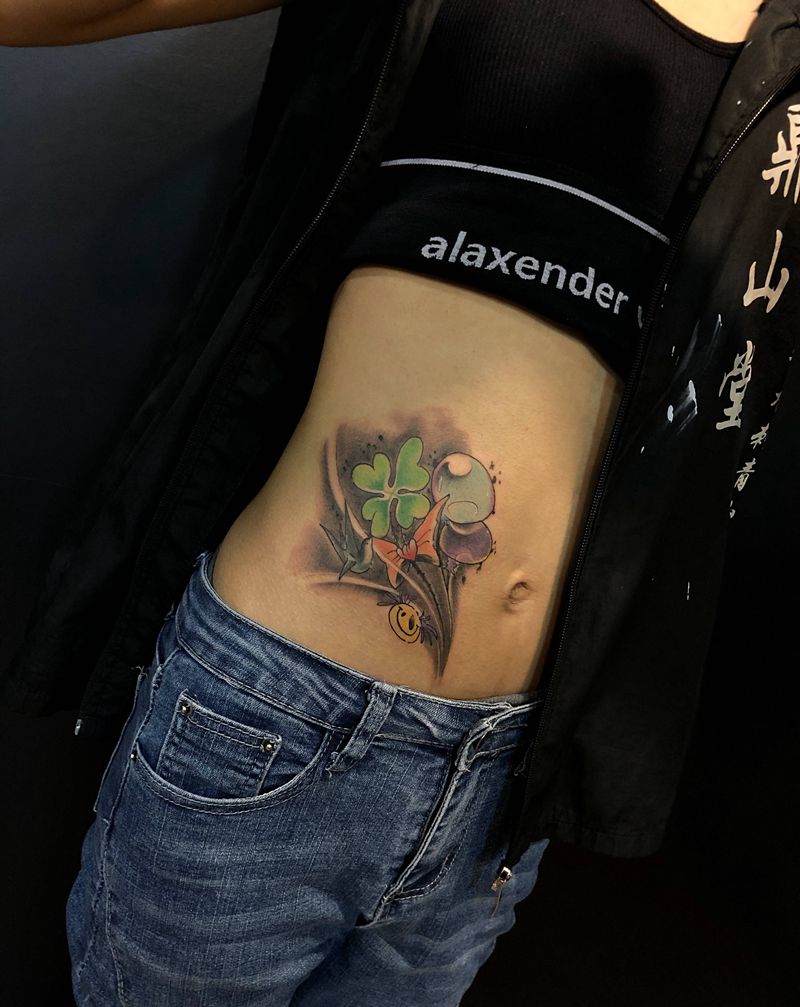 • T关于私处得爱!纹身图片_成品腹部清新字符图腾纹身图案
