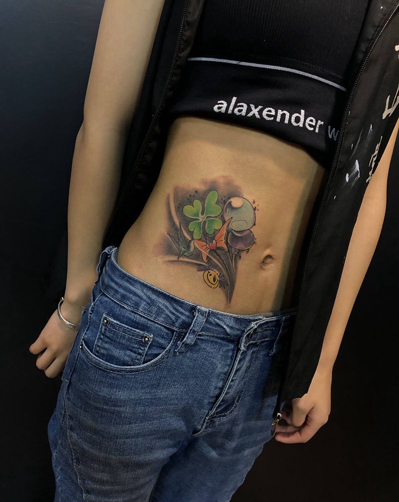 • T关于私处得爱!纹身图片_成品腹部清新字符图腾纹身图案
