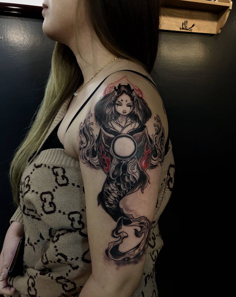 • 纹身吧推荐的披肩图腾半胛纹身图案作品展示