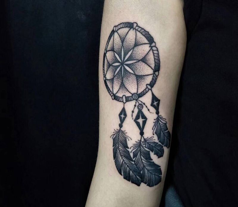 当前位置: 首页 >甘肃省白银市纹身店-明刺先生 艺术刺青纹身图案>捕梦网纹身图片_手臂新传统纹身图案