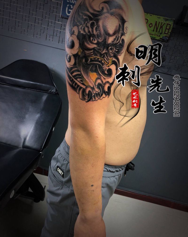 当前位置: 首页 >甘肃省白银市纹身店-明刺先生 艺术刺青纹身图案>唐狮纹身图片_手臂新传统纹身图案