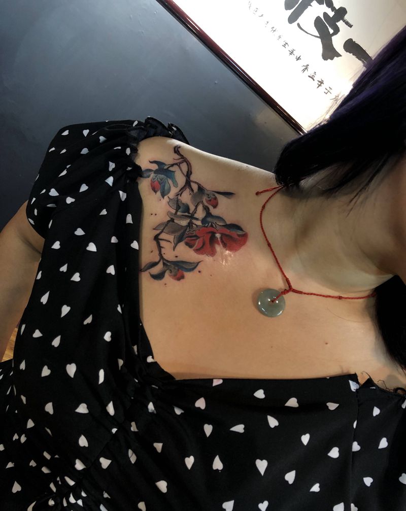 茶花纹身图片_肩部水彩纹身图案
