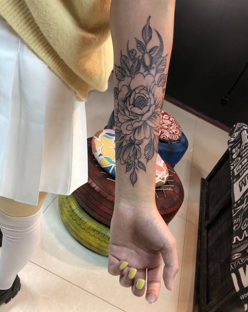 无美颜拍摄素花纹身图片_手臂点刺纹身图案