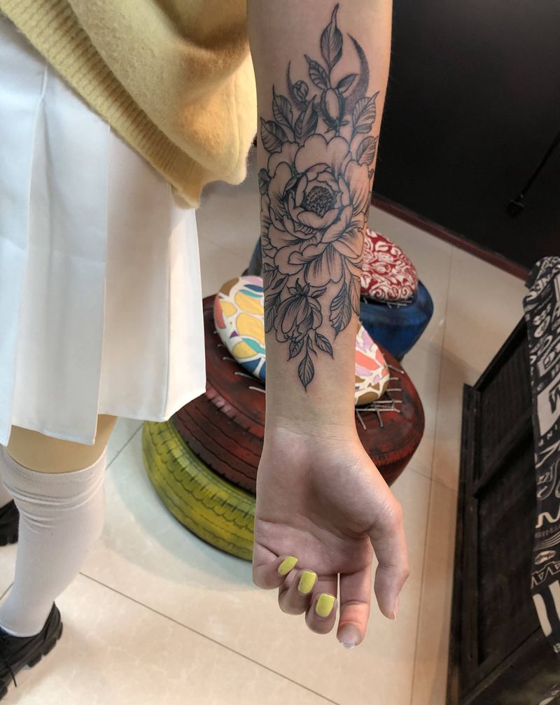无美颜拍摄素花纹身图片_手臂点刺纹身图案