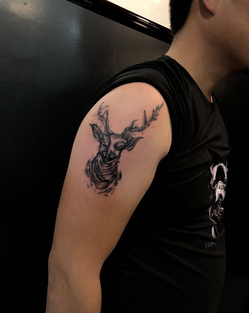 当前位置: 首页 >甘肃省白银市纹身店-明刺先生 艺术刺青纹身图案>鹿头纹身图片_手臂新传统纹身图案