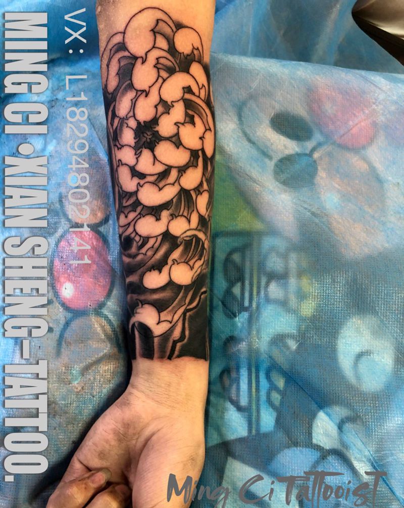 当前位置: 首页 >甘肃省白银市纹身店-明刺先生 艺术刺青纹身图案>菊花~纹身图片_手臂新传统纹身图案