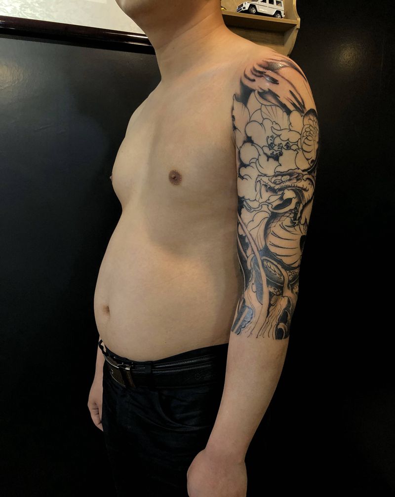 • T网红王老大花腿龙纹身图片_腿部新传统纹身图案