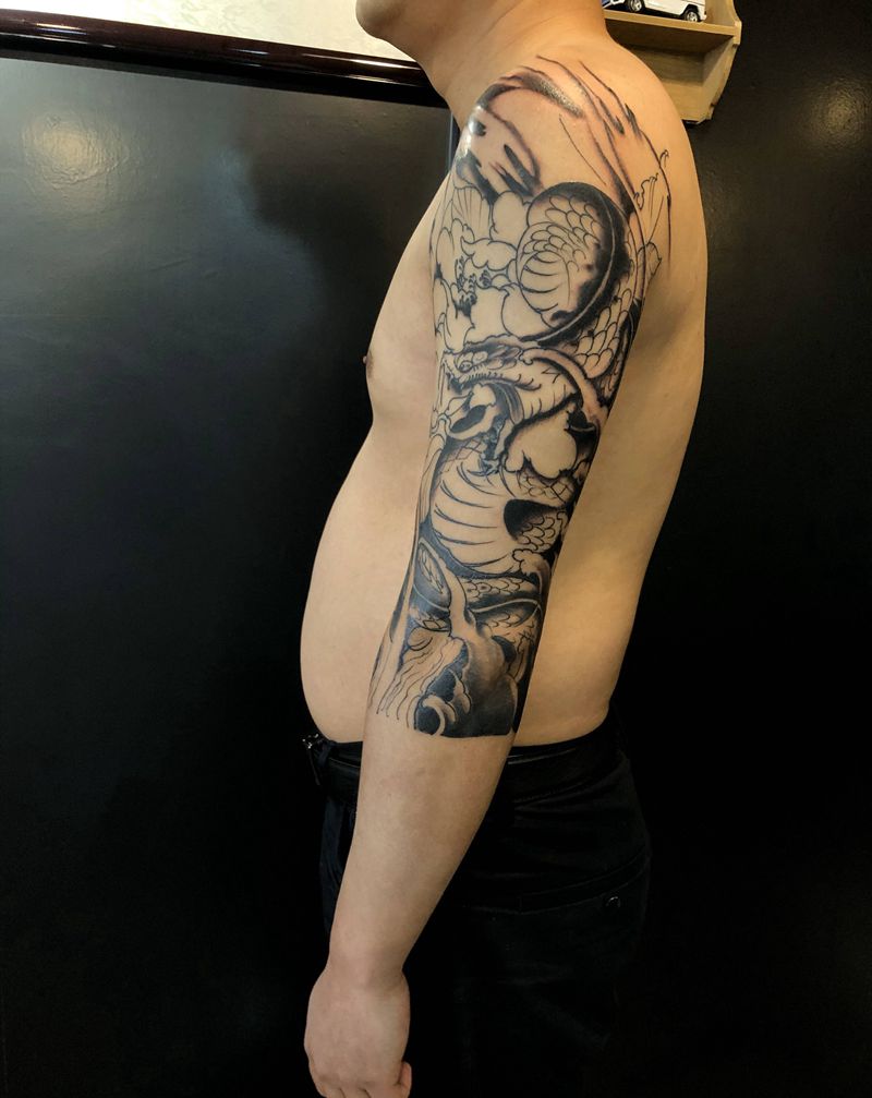 • T网红王老大花腿龙纹身图片_腿部新传统纹身图案