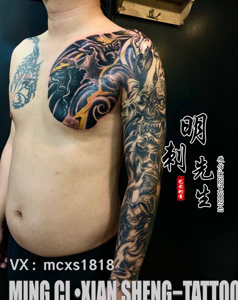 当前位置: 首页 >甘肃省白银市纹身店-明刺先生 艺术刺青纹身图案>花臂 半胛遮盖纹身图片_手部手臂新传统纹身图案