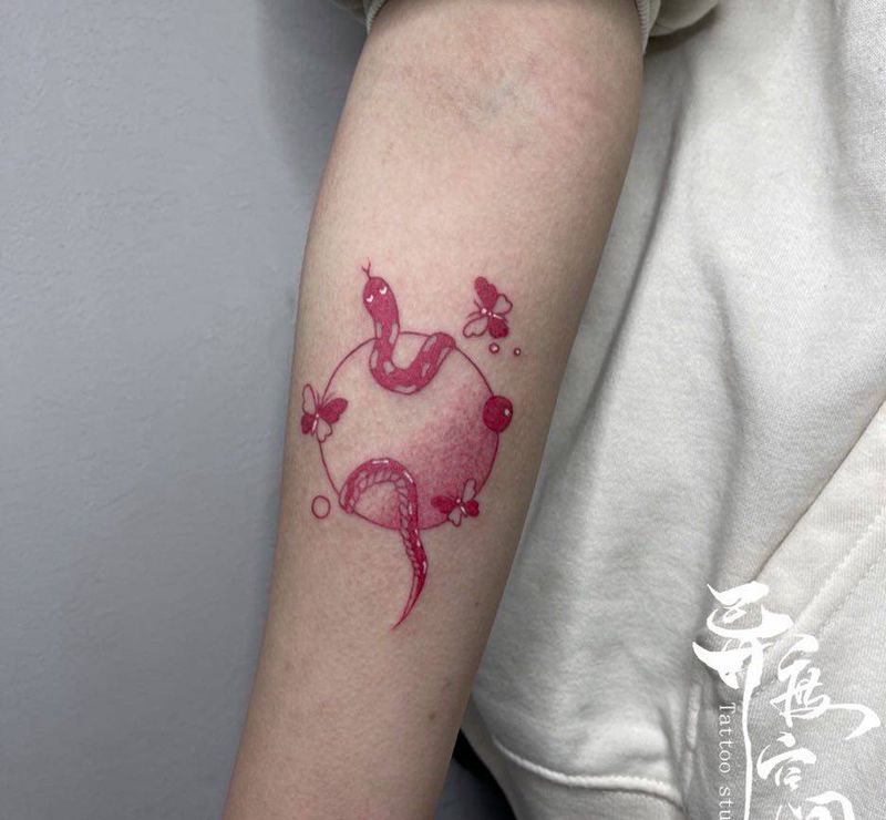 当前位置: 首页 >陕西省安康市纹身店-异度空间纹身馆纹身图案>小清新蛇纹身图片_手臂腿部几何点刺蛇纹身图案