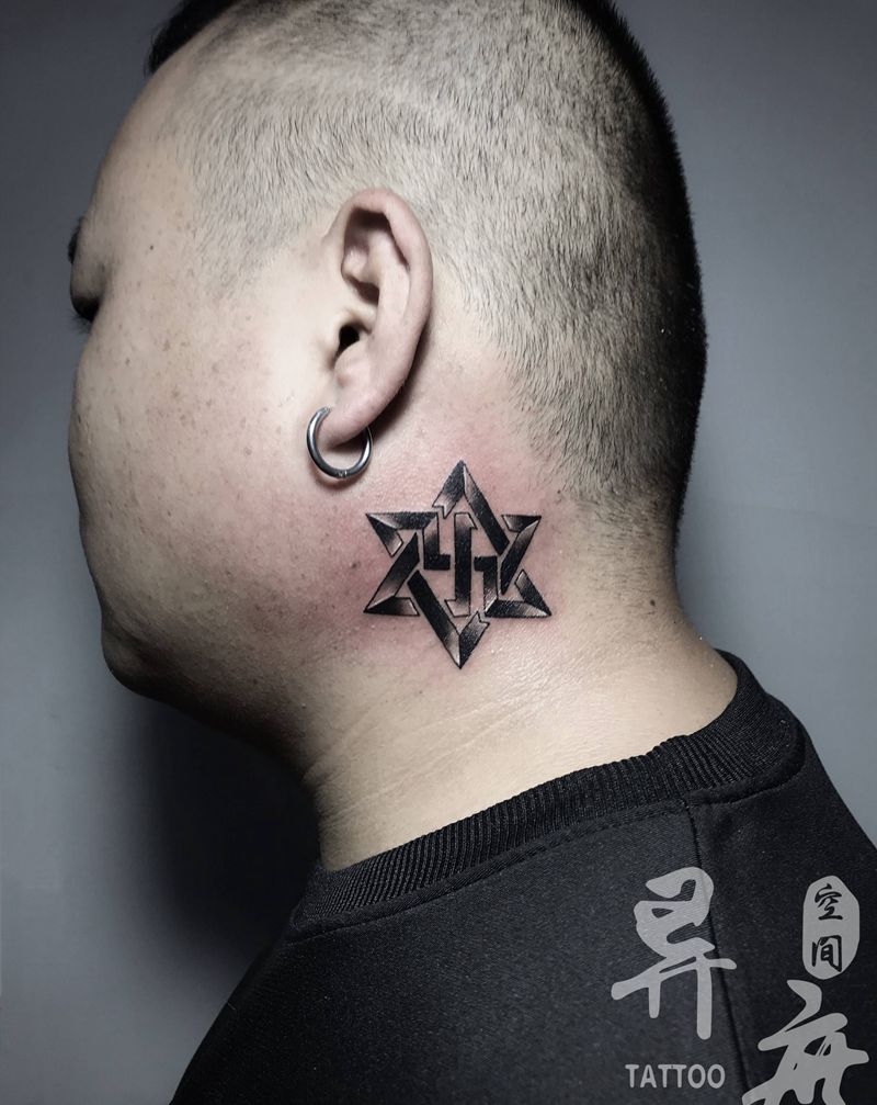 当前位置: 首页 >陕西省安康市纹身店-异度空间纹身馆纹身图案>六芒星纹身图片_颈部几何纹身图案