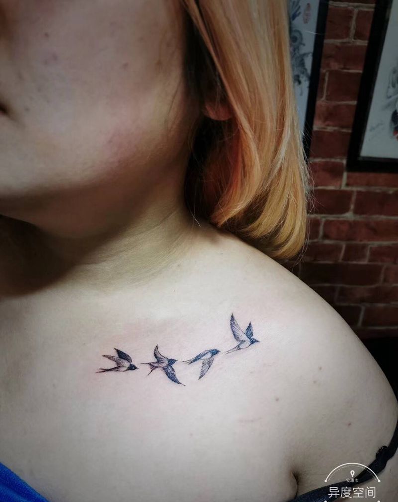 小鸟纹身图片_胸部肩部点刺小清新纹身图案