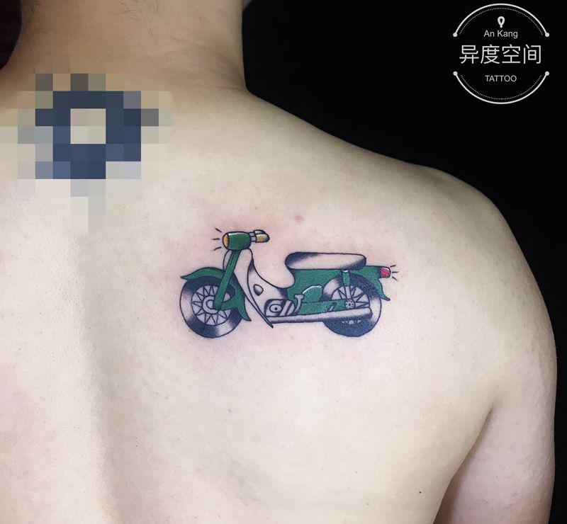 当前位置: 首页 >陕西省安康市纹身店-异度空间纹身馆纹身图案>摩托车纹身图片_背部胸部Old School幼兽复古机车纹身图案