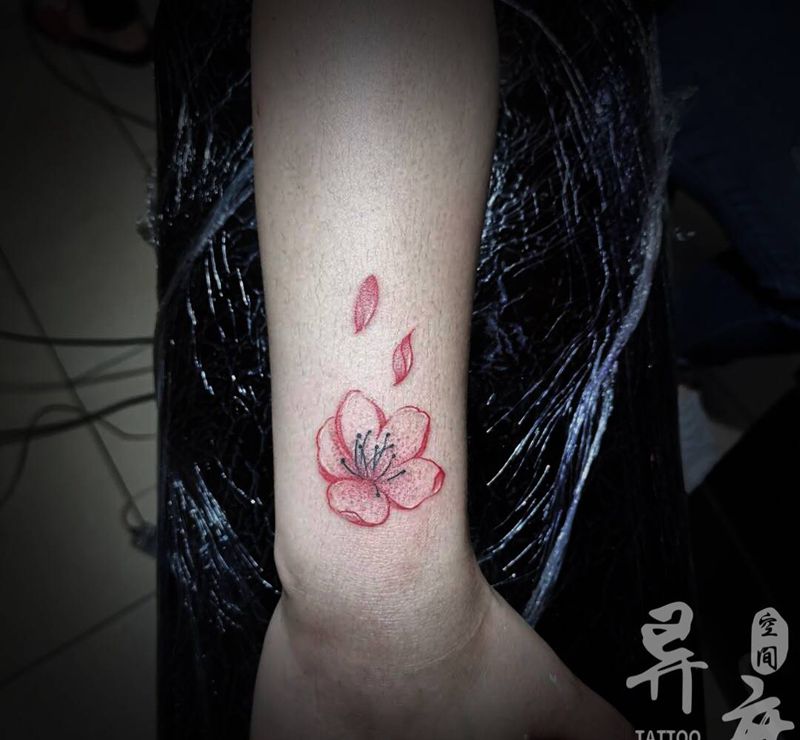 花纹身图片_手臂腿部水彩桃花樱花纹身图案