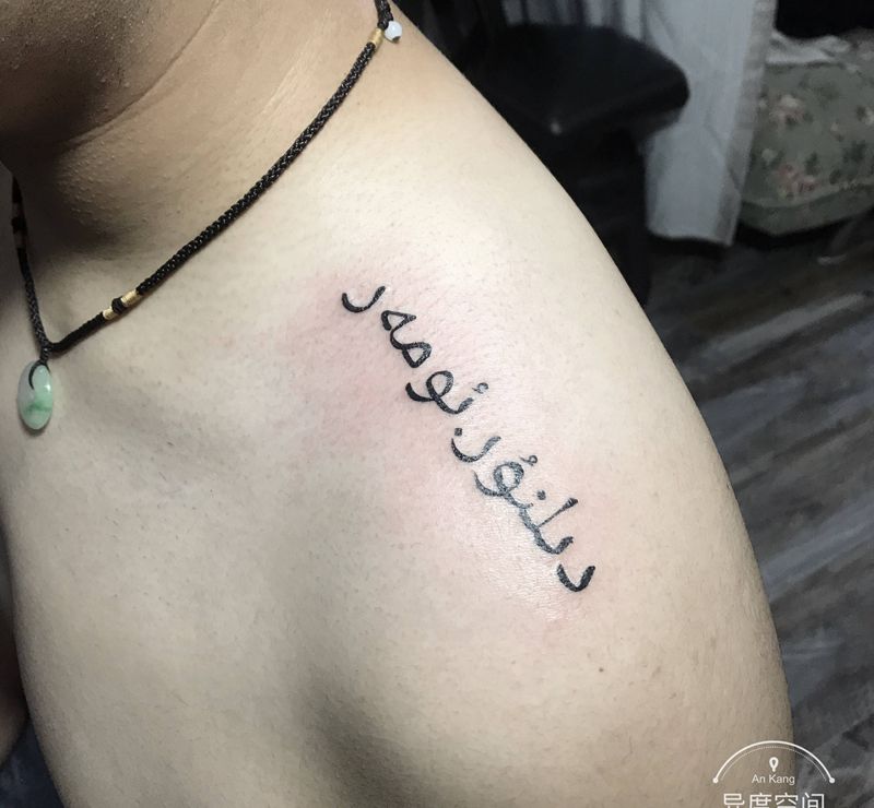 当前位置: 首页 >陕西省安康市纹身店-异度空间纹身馆纹身图案>维文纹身图片_肩部手臂花体字纹身图案