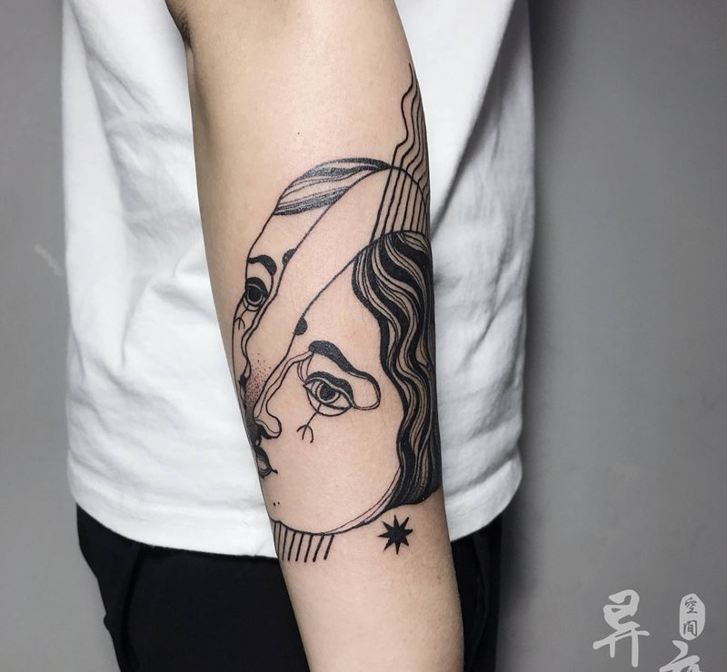 当前位置: 首页 >陕西省安康市纹身店-异度空间纹身馆纹身图案>线条纹身图片_手臂腿部点刺几何女郎线条纹身图案