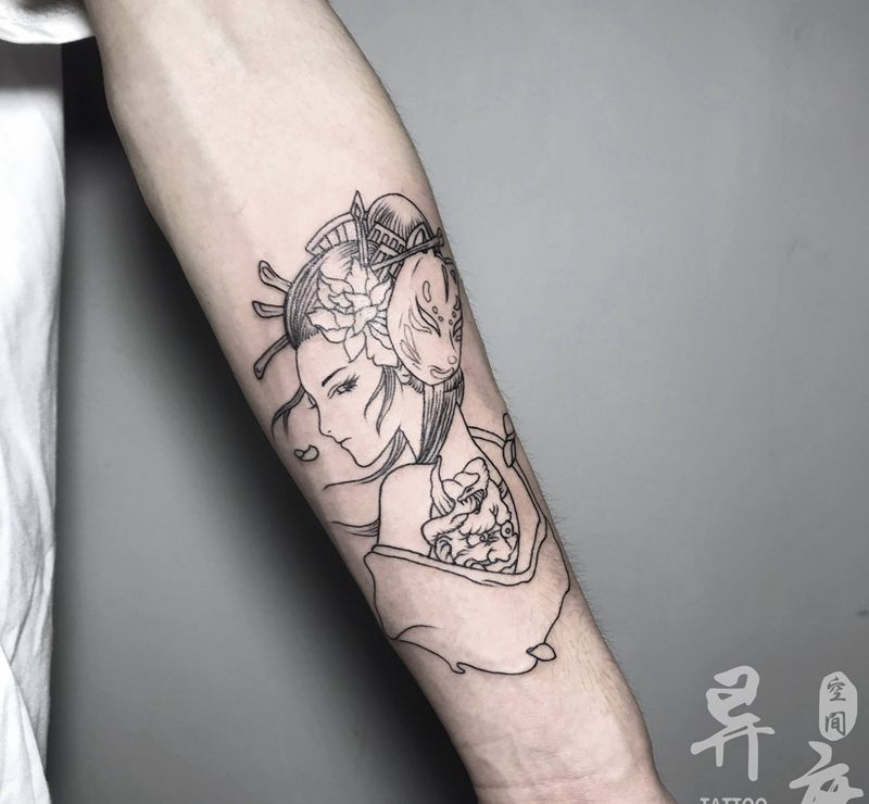 当前位置: 首页 >陕西省安康市纹身店-异度空间纹身馆纹身图案>艺伎线条纹身图片_手臂腿部新传统艺伎纹身图案