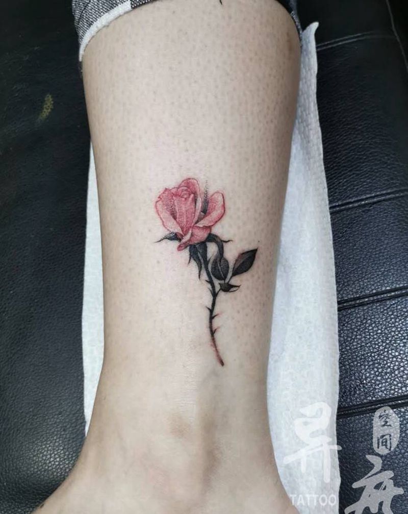 玫瑰纹身图片_腿部手臂水彩纹身图案