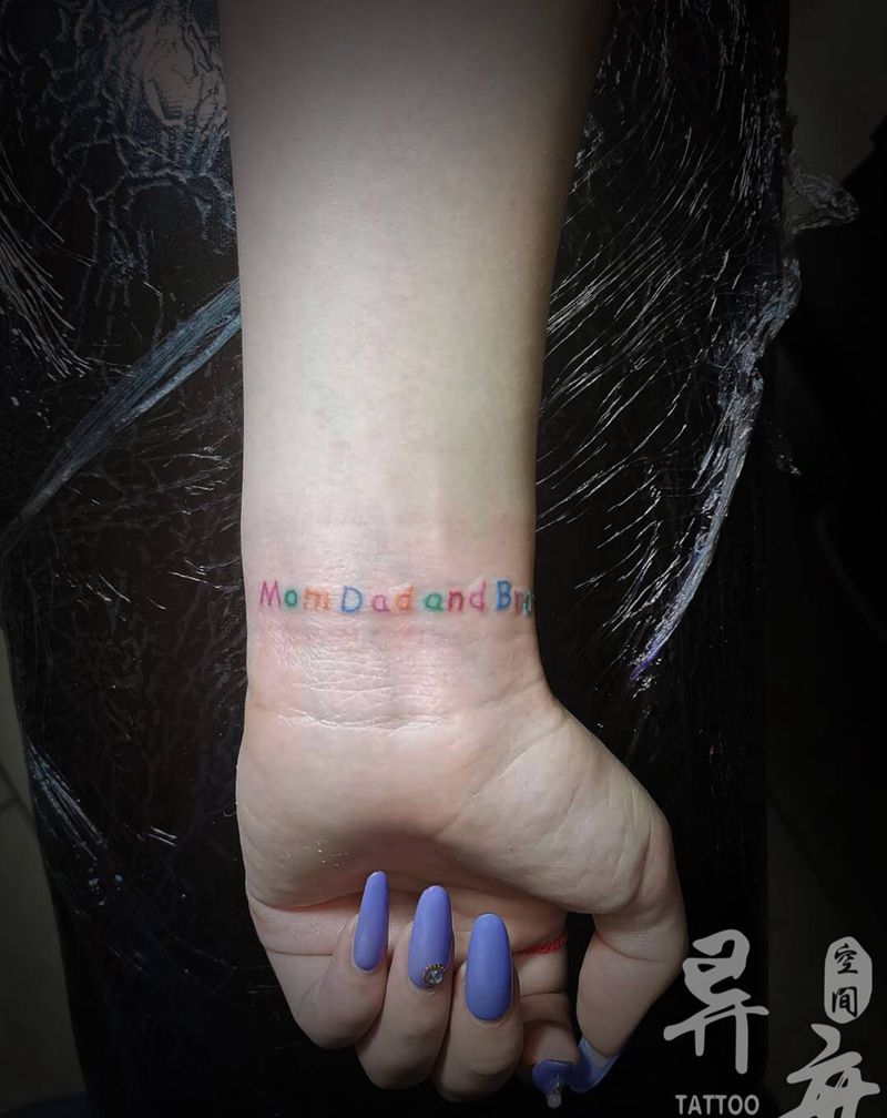 • T家庭图,一家四口生日纪念!纹身图片_手臂纹身图案