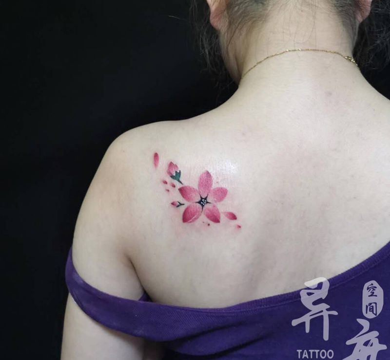 花纹身图片_肩部背部水彩水墨小清新樱花纹身图案