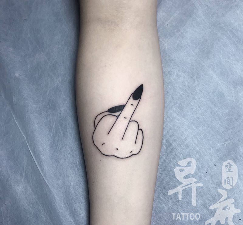 Fk纹身图片_手臂腿部图腾几何手指中指纹身图案